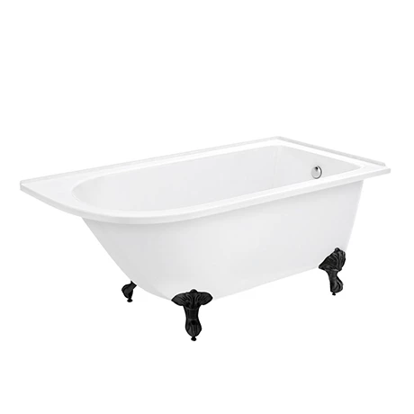 This elegant single ended roll top bath is mounted upon stunning matt black feet to complete a breathtaking appearance. Made with double skinned acrylic with a superb surface finish. Bath has no tap holes. Please be aware that any tap holes have to be drilled by the customer.
