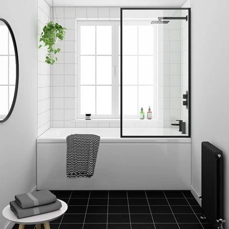The elegant Arezzo square bath screen with a matt black frame detailing, brings together classic style with quality, this bold and trendy black framed bath screen is made with 6mm toughened safety glass. Bath screen can be reversed for left or right fitting. Clean, simple lines define this stunning shower bath screen.