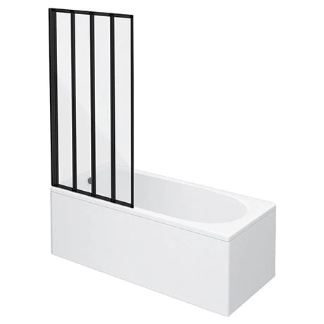 The Arezzo round single ended bath tub with 800mm wide matt black folding bath screen is great for creating a practical, easy to use shower space, this screen is created from four folding panels in a concertina design.