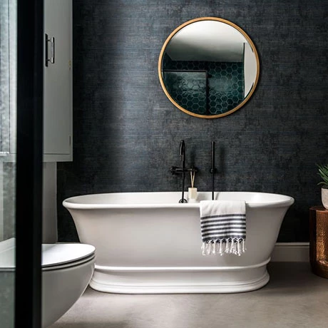 The Bampton double ended freestanding bath from BC Designs is inspired by the fireclay baths of the early 20th Century. Made from Cian® Solid Surface an advanced blend of acrylic modified polyester resin and mineral compounds, which has heat retaining properties and is scratch and stain resistant.