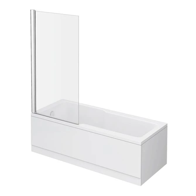 The perfect alternative shower bath, this rectangular design takes up less width in the bathroom compared to a traditional shaped shower bath. The Bordo shower bath will accept any regular rectangle bath panel. Supplied with a hinged square bath screen to provide good coverage against splashes. The glass is also reinforced for durability and peace of mind. The hinge means it can swing open for ease of access and fuss free cleaning. Bath waste and panels sold separately.