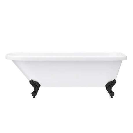 A stunning 1780mm long roll top bath with traditional matt black feet, enjoy the feeling of luxury with this classical free standing bath. This elegant single ended roll top bath is the perfect centrepiece for a traditional bathroom. The bath is mounted upon stunning matt black feet to complete a breathtaking appearance. Made with double skinned acrylic with a superb surface finish. Bath has no tap holes and a continuous rolled rim.