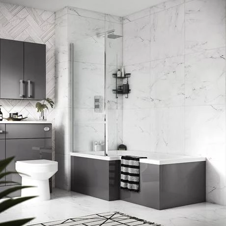 A 1700mm Front Bath Panel from Hudson Reed for square shower baths, designed to match Hudson Reed’s Gloss Grey Fitted Furniture Range.