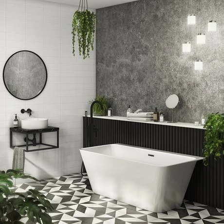 The Mileto Back To Wall Modern Square Free Standing Bath with ledge, made from hard wearing acrylic this bath offers a clever solution for compact bathrooms. One side of this 1500mm bath sits flush against the wall, while its elegant sleek edge saves space. Finish the look with a wall-mounted or freestanding bathtub faucet for a luxurious touch.