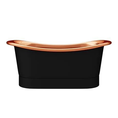 The luxury Trafalgar 1700 classic roll top double ended slipper bath, made using traditional metal working techniques, features a stunning matt black painted finish with a polished copper inner. This quality handcrafted bath provides the perfect focal point in both traditional and contemporary bathrooms, if you want to make a genuine statement with your bath design, then choose from our luxury matt black/copper bath collection. Designed for use with wall mounted or floor mounted free-standing bath taps.