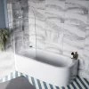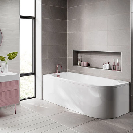 The stylish Trojan J-Shaped acrylic bath is ideal for bathrooms where space might be limited. This single ended bath features a curved corner end for ease of movement around the end of the bath. The bathtub comes with a pre-drilled waste and overflow holes, and also includes a set of bath legs and matching curved acrylic bath panel.