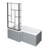 Make a statement with this Venice L Shaped Shower Bath and Matt Black Abstract Grid Screen. The bath stretches 1700mm long and has a eye catching satin white finish. It contrasts beautifully with the matt black screen, which has a abstract grid design to bring some modern flair to your bathroom. The L shaped tub gives you extra shower space, even if your bathroom is too compact for a separate shower and bath, while the hinged bath screen offers ease of access โ why not pair it with the Arezzo Square Thermostatic Shower in matt black?ย