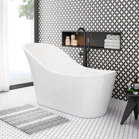 The 1730 x 720mm Vienna contemporary Free standing Slipper Bath will make a stylish addition to any bathroom. Suitable as a centre piece for any bathroom design with it’s eye-catching swooping lines. If you want to make a statement with your bath design, then choose from our luxury collection. Made from 4-6mm thick smooth white gloss acrylic. This bath has been designed for use with wall mounted or floor mounted free standing taps.